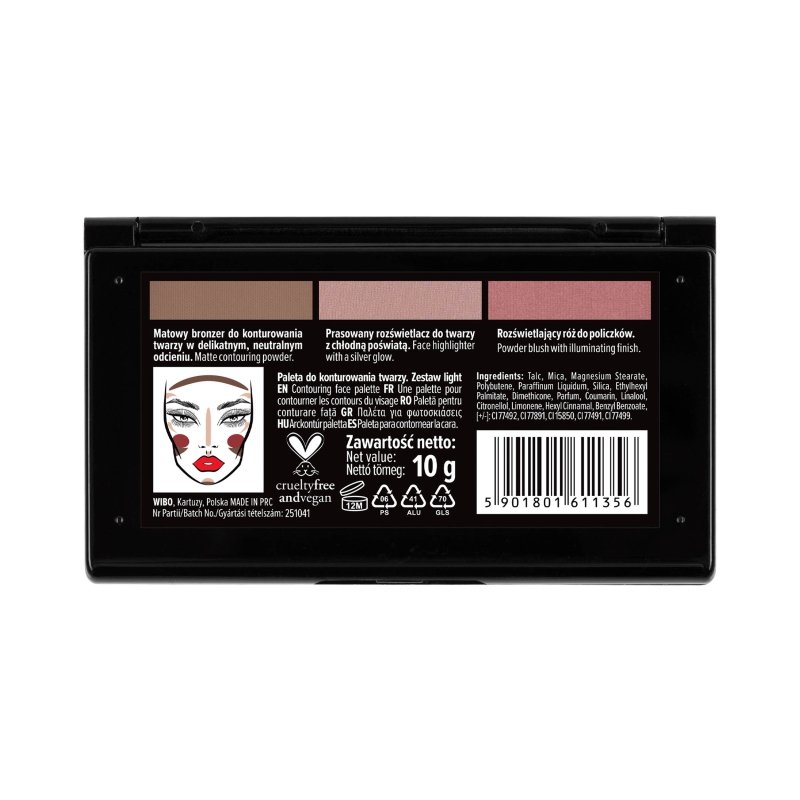 این پالت کانتورینگ سهتایی شامل برنزر مخملی، رژگونه هولوگرافیک و هایلایتر طلایی است که با رنگدانههای غنی و بافت نرم، بهراحتی ترکیب میشود و ماندگاری طولانی دارد.